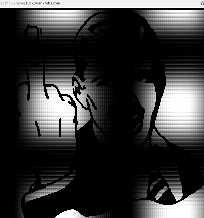 Caturegli briefly configured all subdomains on fuckbriankrebs dot com to display this ASCII art image to visiting systems today.